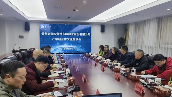 2024年2月29日,在黔南州科技局領導的大力助推下,東峰銻業與貴州大學產學研合作交流座談會在貴州大學賢正樓順利召開。東峰銻業股份有限公司總經理覃事敦與貴州大學科學技術研究院院長吳復忠教授等雙方代表就如何深化合作、共同推動產學研一體化發展進行了深入交流。