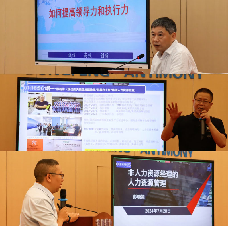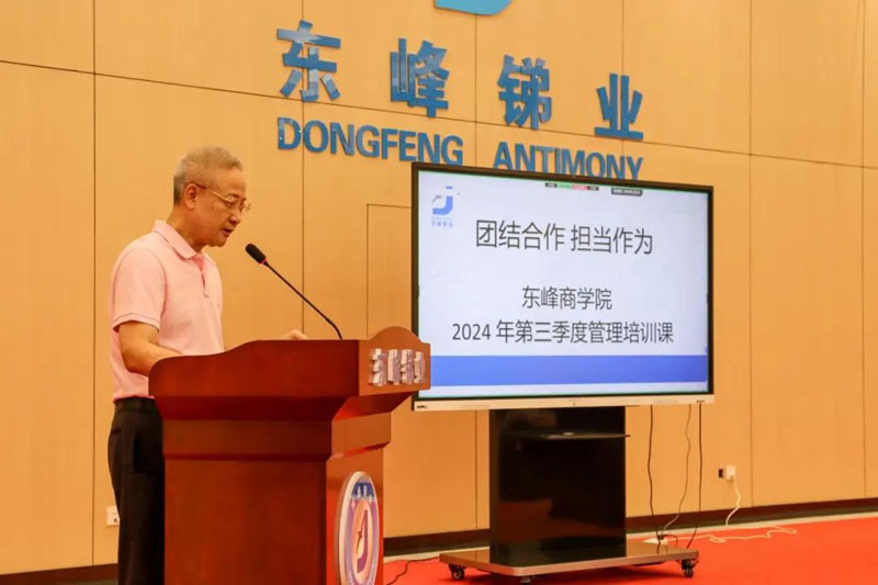 7月28日,東峰銻業商學院開展了第三季度培訓。本次培訓邀請到東峰股份人力資源總監彭曉穎、杰夫集團總裁助理柳若水、行業資深專家陳建權三位老師傾情授課。