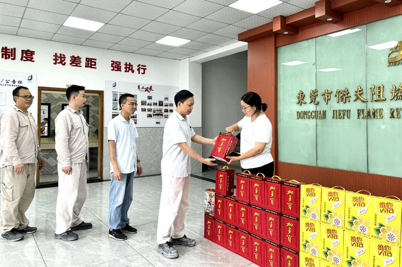 最后,大朗鎮工會向我司贈送了慰問禮品,呂芳煒總經理表示,東莞杰夫將在各級政府部門及村委的關懷下,不驕不躁,繼續發揮產品、技術和服務優勢,不斷增強核心競爭力,努力發展再上一個臺階!