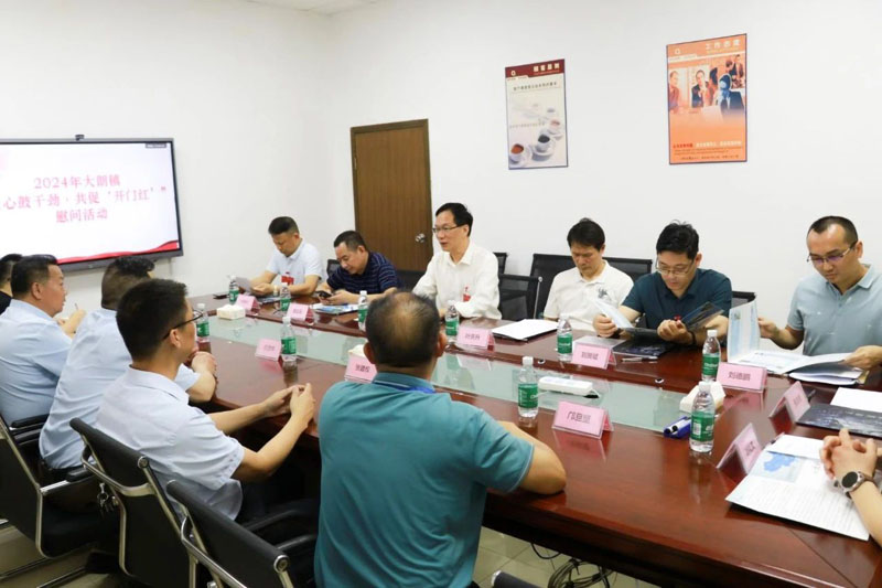 座談慰問會上,劉學新主席對我司的生產、經營進行了詳細的詢問并了解企業的發展的困難和需求,呂芳煒總經理全面介紹了公司目前的情況、行業地位及未來發展規劃和前景,并感謝大朗鎮政府多年來的關注和大力支持。呂芳煒總經理表示,東莞杰夫是具有商務部銻制品進出口貿易資質的企業(全國僅11家),是東峰銻業旗下銻產業鏈中下游深加工和國內貿易的標桿企業,受益于母公司產業鏈優勢,近年來業績不斷取得突破,穩重向好,今年一季度以來,產值已經突破了1億元,工廠接近滿負荷生產,內外銷的生產訂單已經排期到5月底,但受限于用地,希望鎮政府能夠幫助解決發展用地,解決擴產需求問題。劉學新主席回復并安排了相關單位進行跟進對接落實。